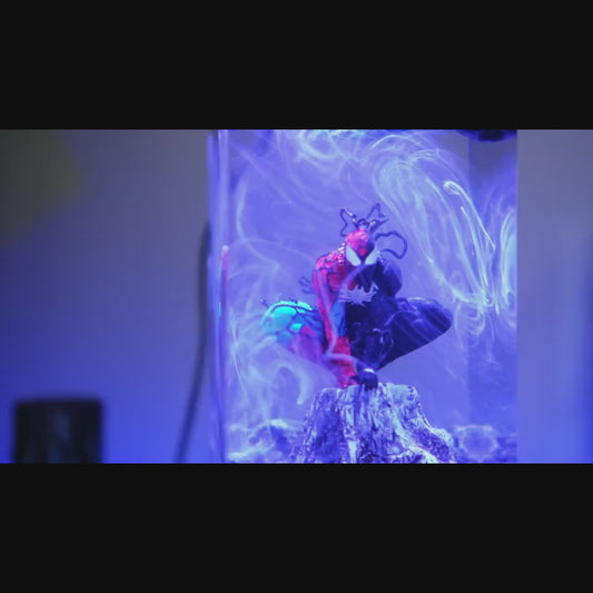 Spider Man vs Venom LED Resin Lamp - Marvel Wood & Epoxy Battle Diorama Light
