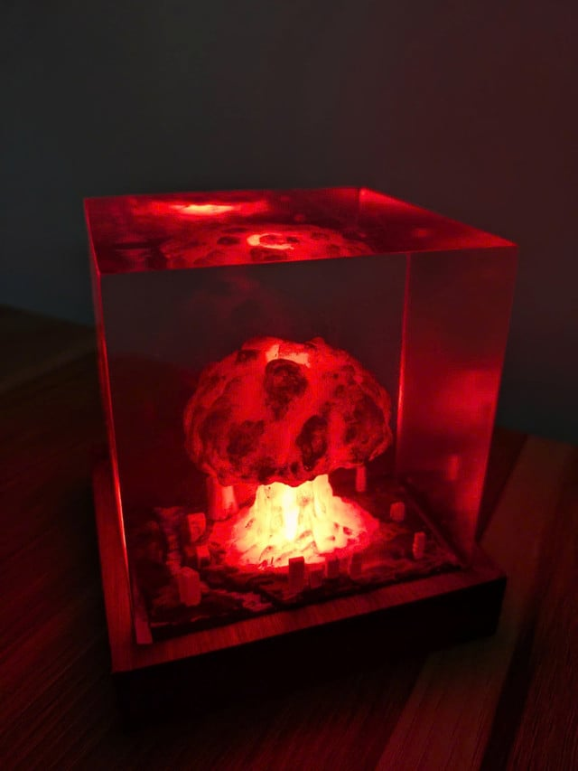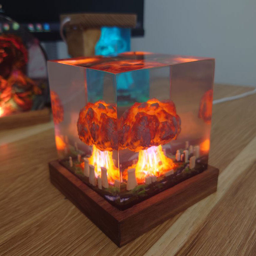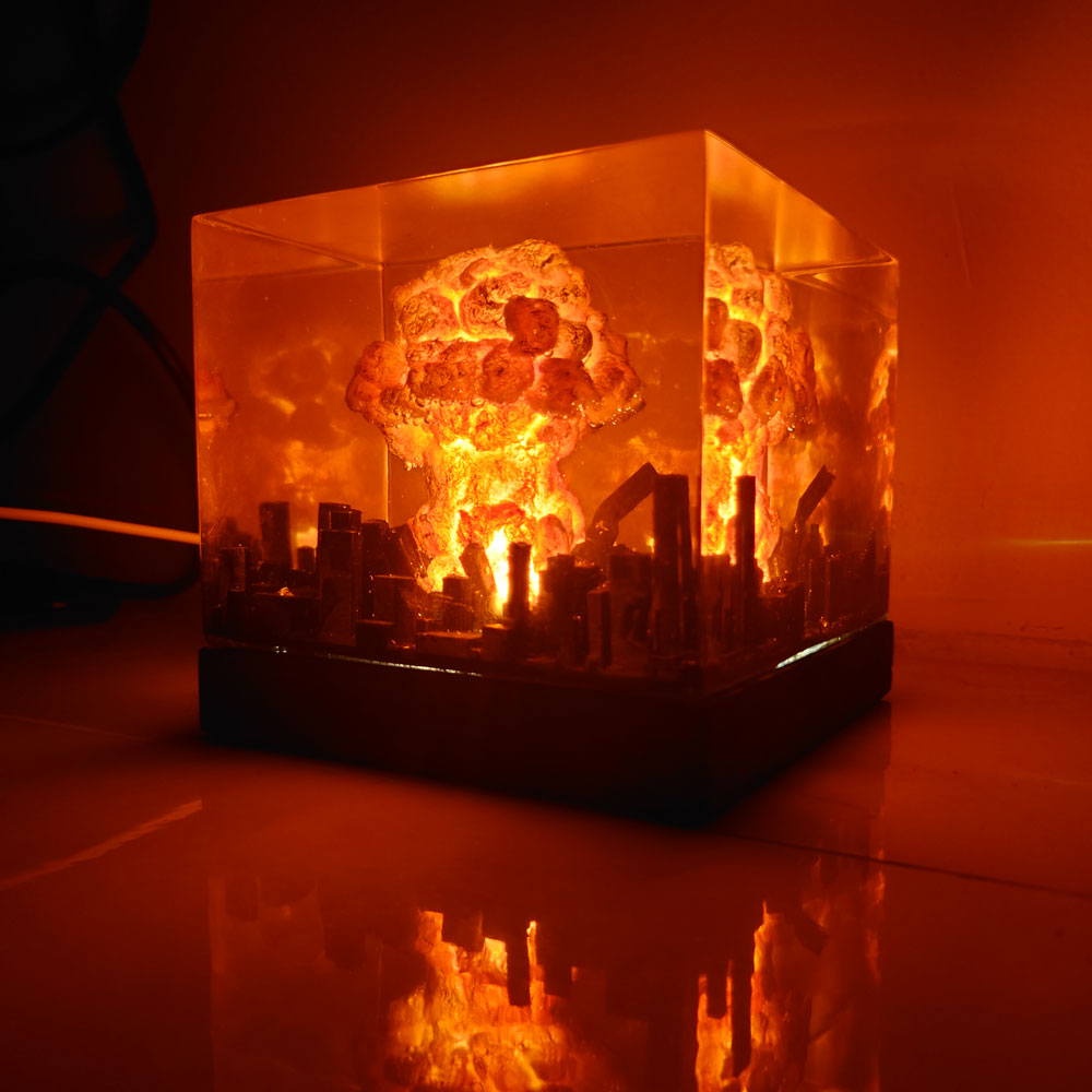 We simulated a nuclear explosion in the middle of the city with the model, epoxy resin and combined with light.