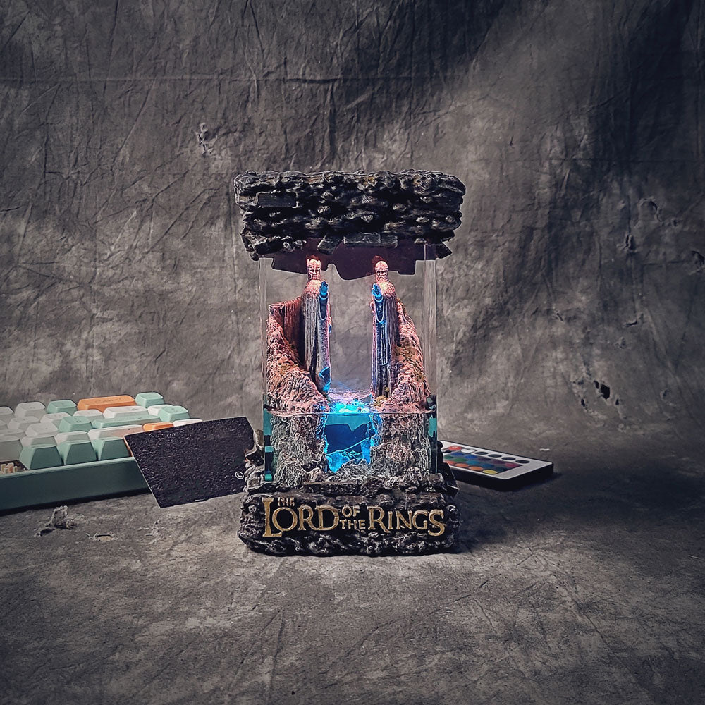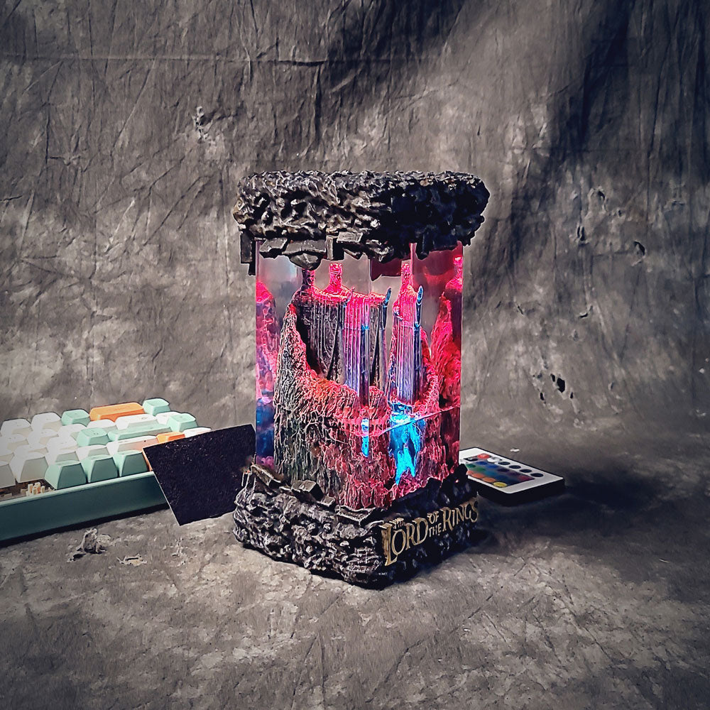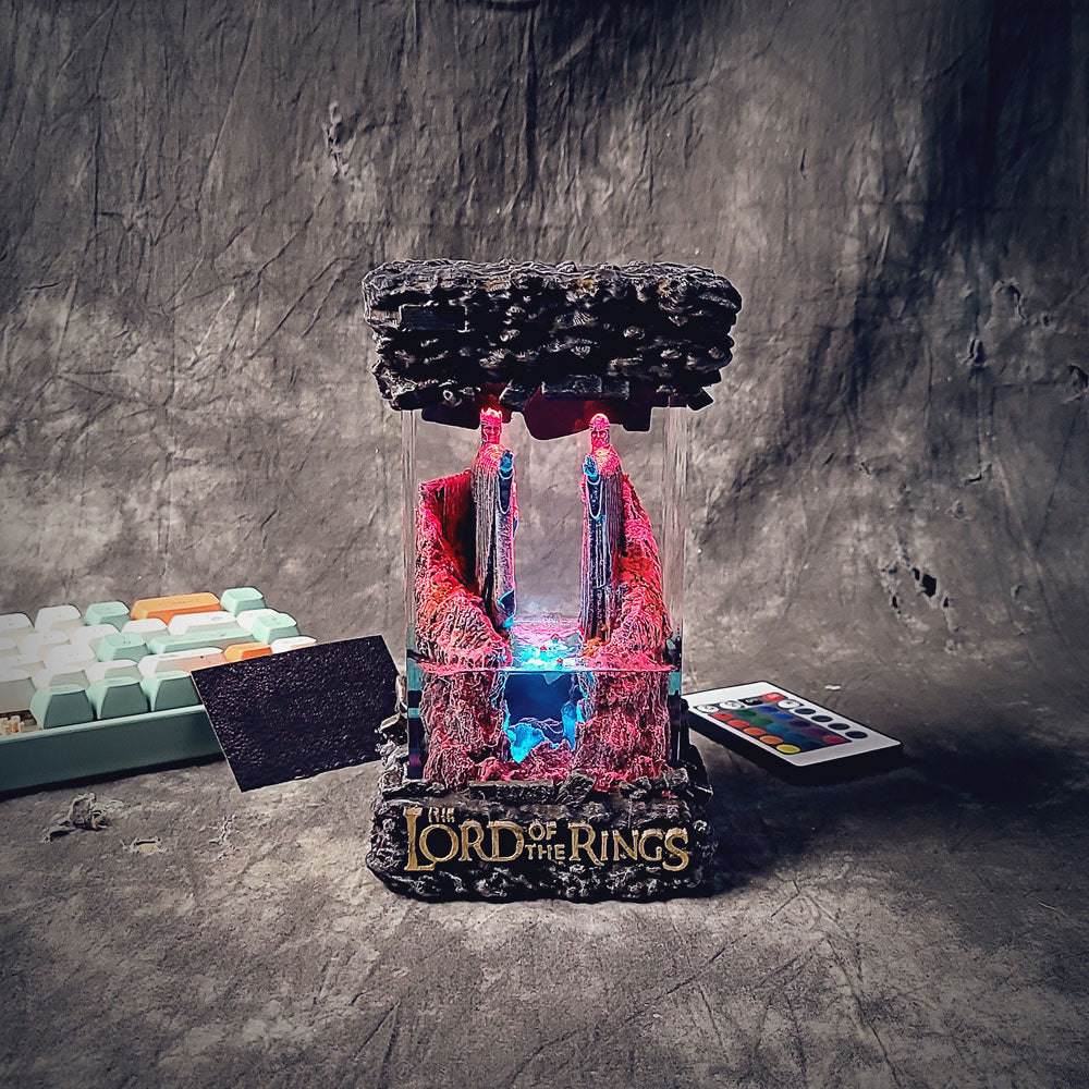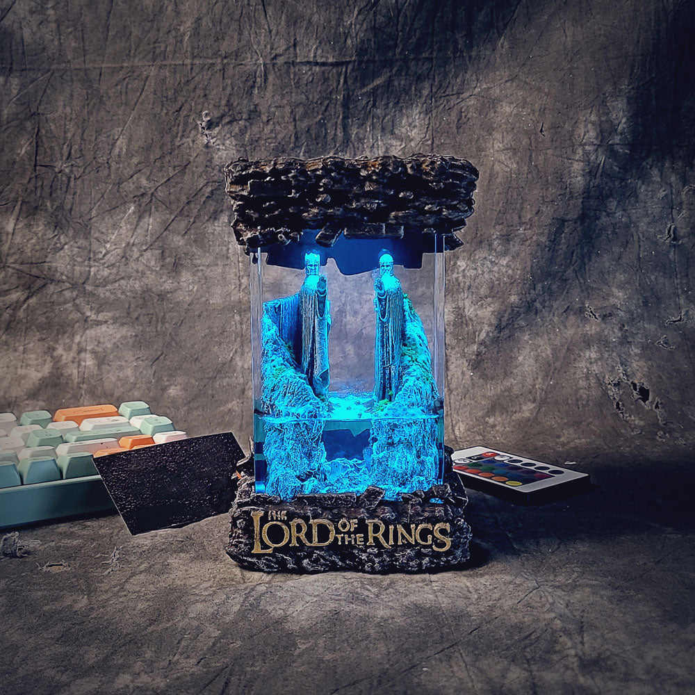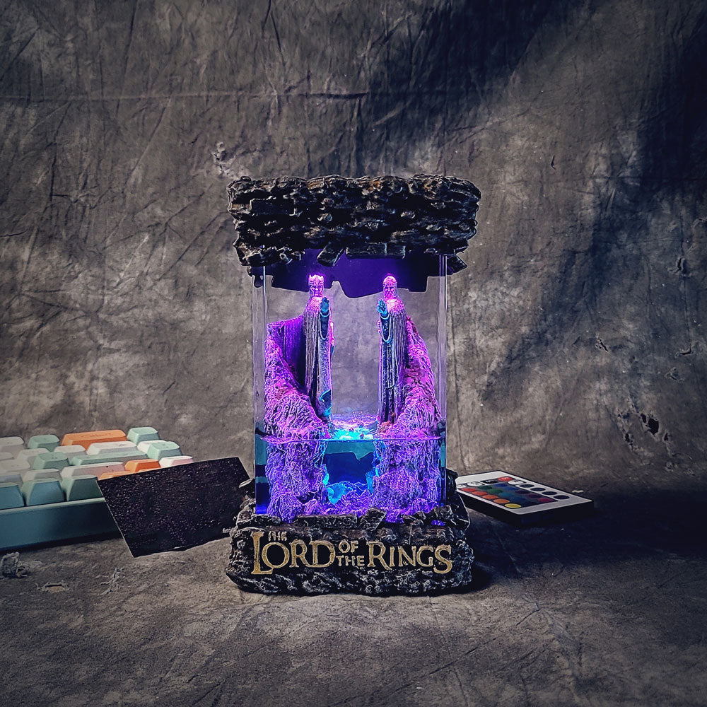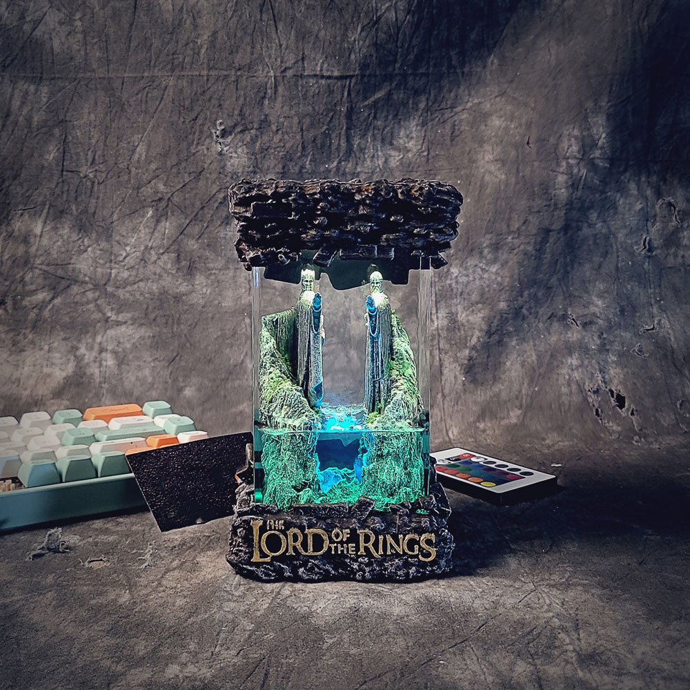 Illuminate your space with the grandeur of Middle-earth! This handcrafted resin lamp is inspired by the legendary **Gates of Argonath** from *The Lord of the Rings*—featuring the iconic statues of Isildur and Anárion standing tall above the Anduin River. With stunning detail, glowing LED lights, and a mystical atmosphere, this lamp brings Tolkien’s world right into your home.